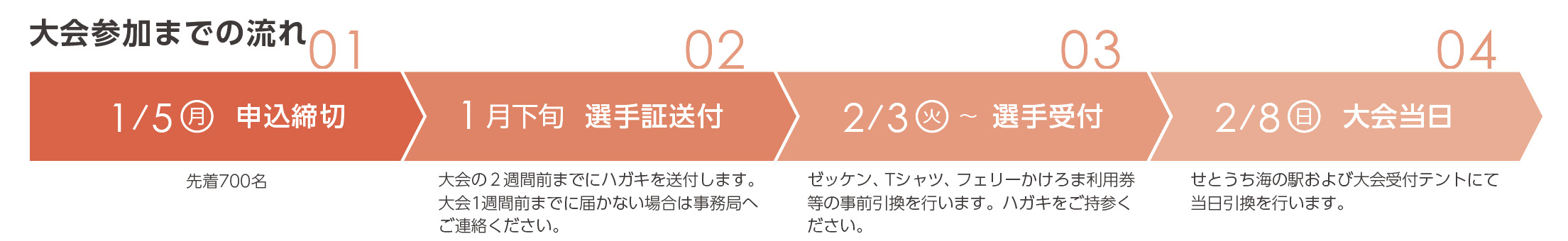 3. 参加者にはゼッケン番号などを記入した「選手証」(はがき)を2週間前までに郵送いたします。はがきは受付時に必ず持参してください。